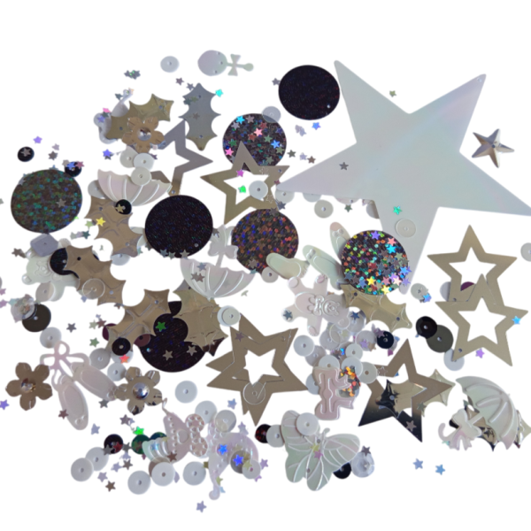 Flitry, mix barev, tvarů a velikostí. Skvělé na tvoření (našívání, lepení, obkreslování nebo aranžmá na párty stůl).